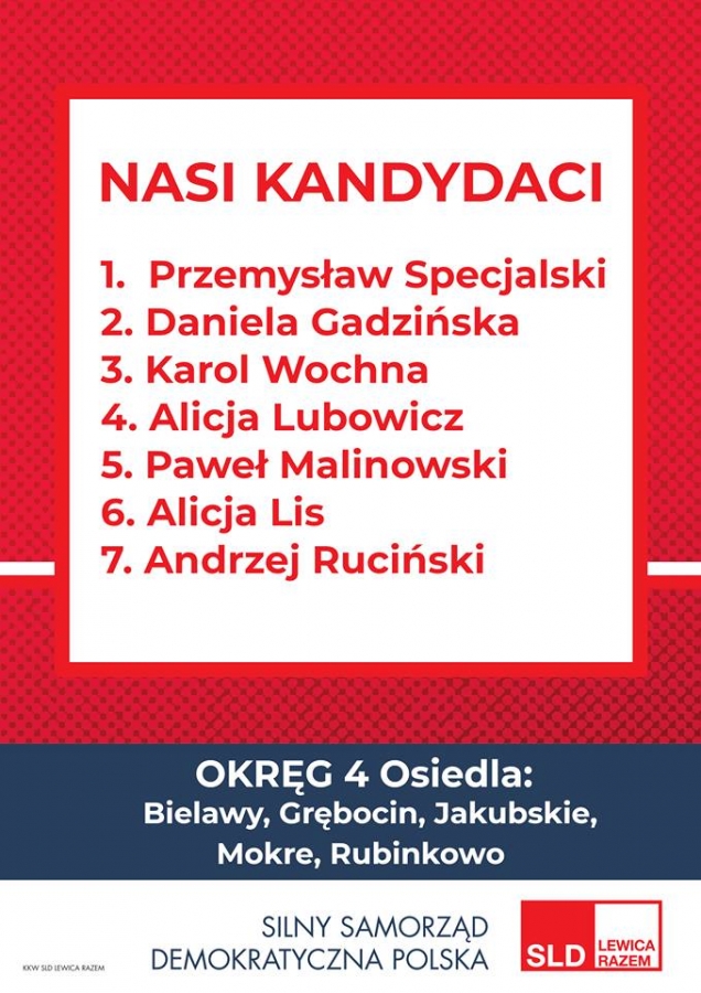 Prezentujemy kandydatki i kandydatów startujących w ramach Koalicyjnego Komitetu Wyborczego SLD Lewica Razem do Rady Miasta Torunia oraz program wyborczy – „Toruń Miastem Przyjaznym".