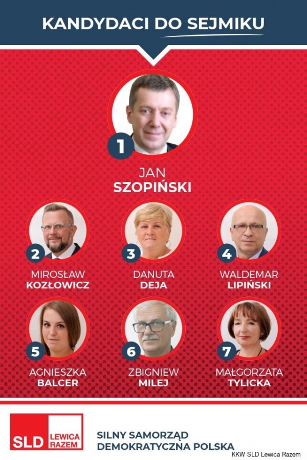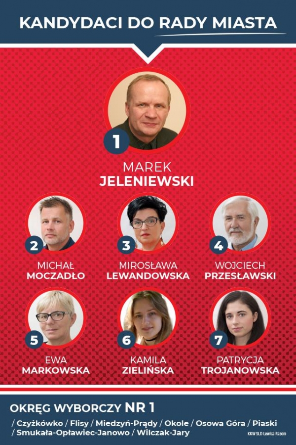 Prezentujemy kandydatki i kandydatów startujących w ramach Koalicyjnego Komitetu Wyborczego SLD Lewica Razem do Rady Miasta Bydgoszczy, kandydatkę na urząd prezydenta Bydgoszczy oraz listę do Sejmiku Wojewódzkiego w okręgu nr 1 - Bydgoszcz.