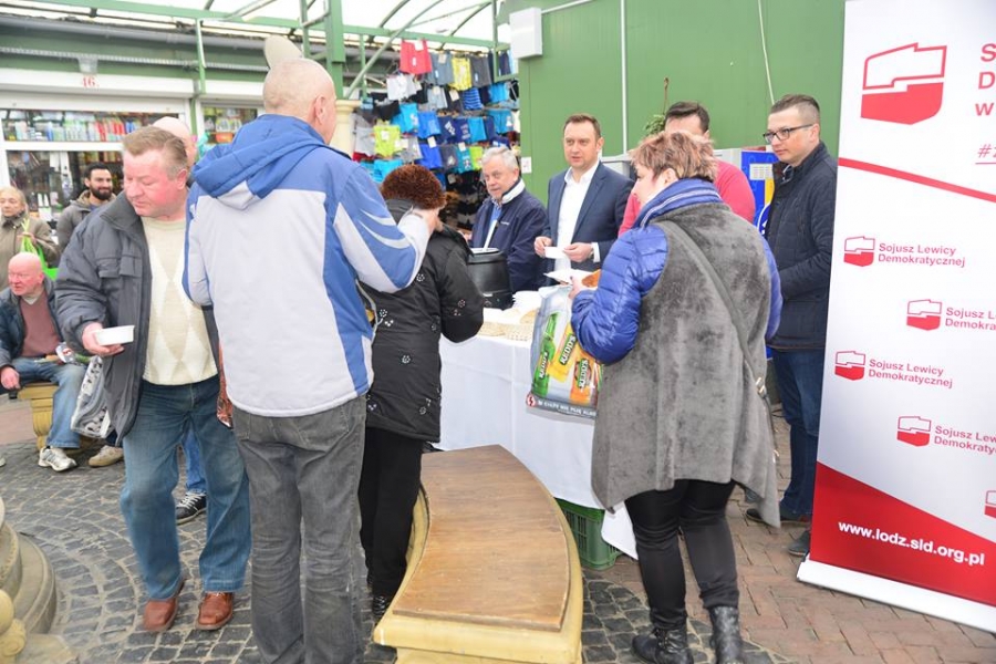 Politycy i działacze Sojuszu Lewicy Demokratycznej w Łodzi, jak co roku, przygotowali dla mieszkańców tradycyjny świąteczny poczęstunek. Nie zabrakło wielkanocnych potraw i słodkości.